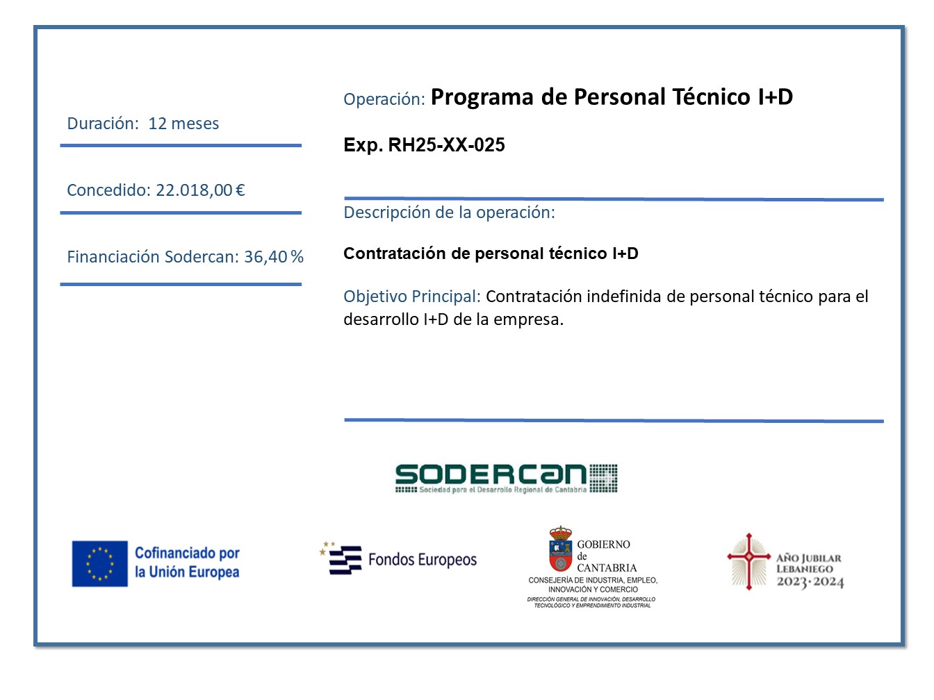 El objetivo es apoyar la contratación indefinida de personal técnico cualificado en las empresas de Cantabria para el desarrollo I+D de la empresa, para la realización de funciones específicas tanto a nivel nacional como internacional, consiguiendo al mismo tiempo, la especialización de plantillas empresariales, el acceso de profesionales al mercado laboral, y facilitar el retorno del talento a la Región.